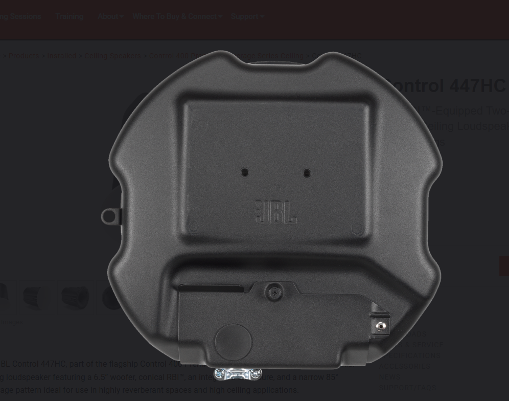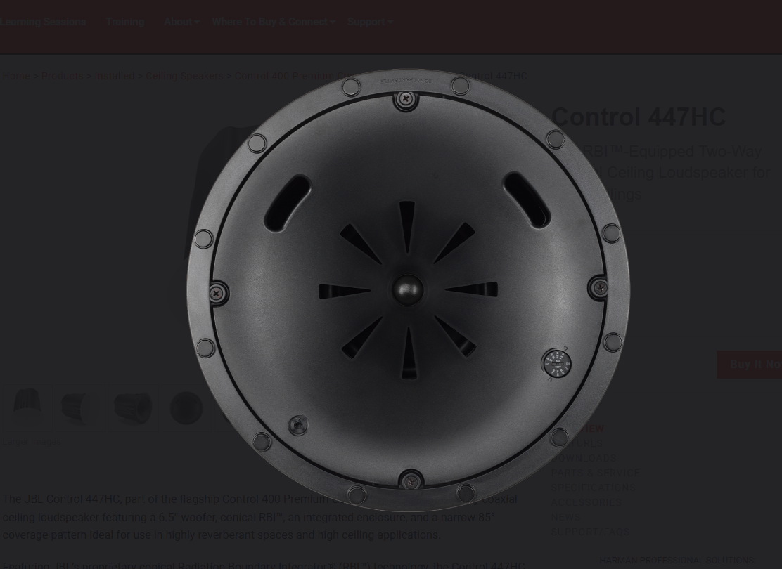 The JBL Control 447HC, part of the flagship Control 400 Premium Coverage Series, is a two-way coaxial ceiling loudspeaker featuring a 6.5” woofer, conical RBI™, an integrated enclosure, and a narrow 85° coverage pattern ideal for use in highly reverberant spaces and high ceiling applications.