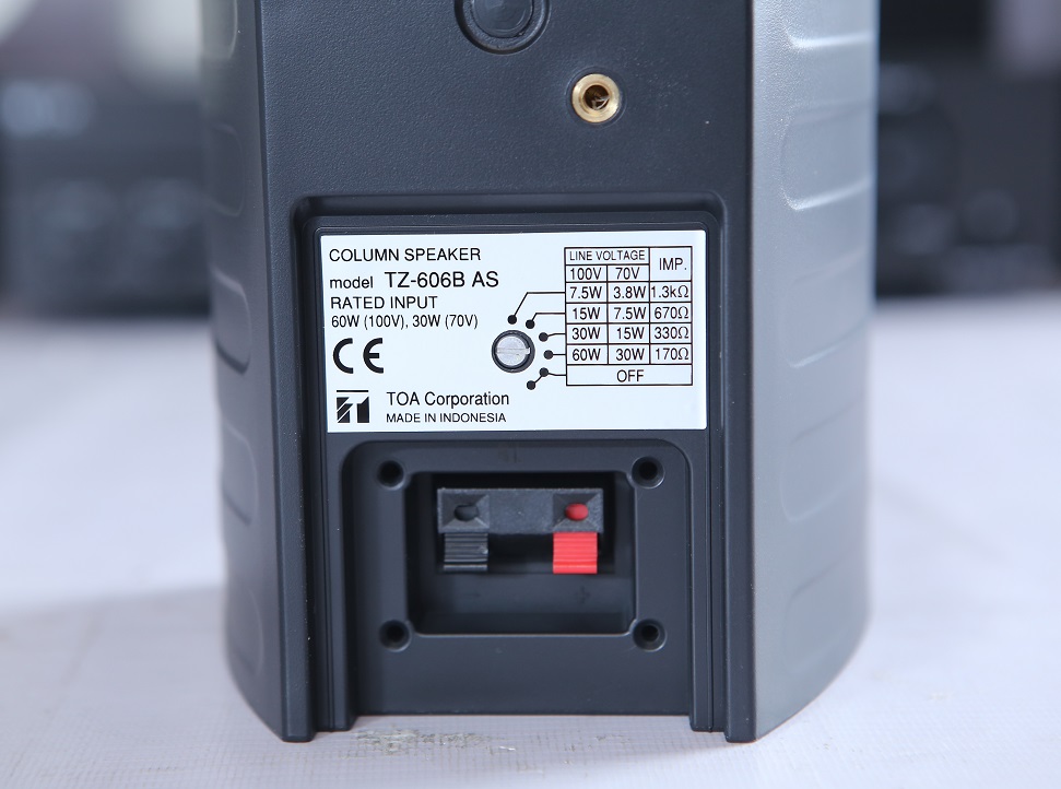 Loa cột: Toa TZ-606B Công suất 60 W TZ-606B là loa cột 60W màu đen thuộc dòng loa cột TZ, có kích thước nhỏ gọn, hiệu năng cao và mang đến chất lượng âm thanh tuyệt vời cho các ứng dụng từ nhỏ tới trung bình như các khu vực nhà thờ, phòng tập Gym, nhà hàn