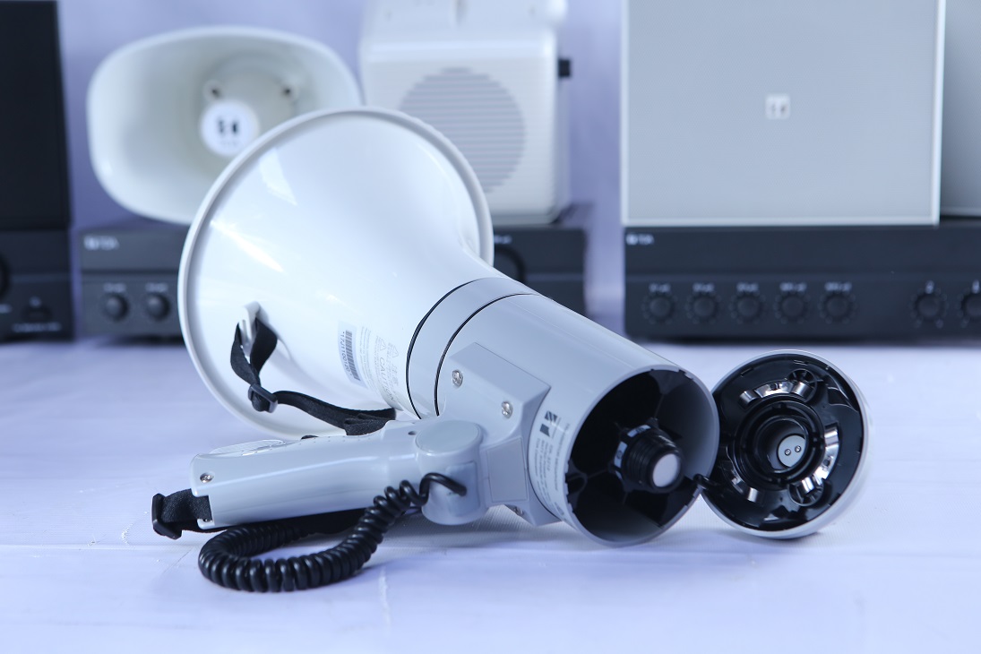 - Miệng megaphone, hộp pin, tay cầm: nhựa ABS, màu xám