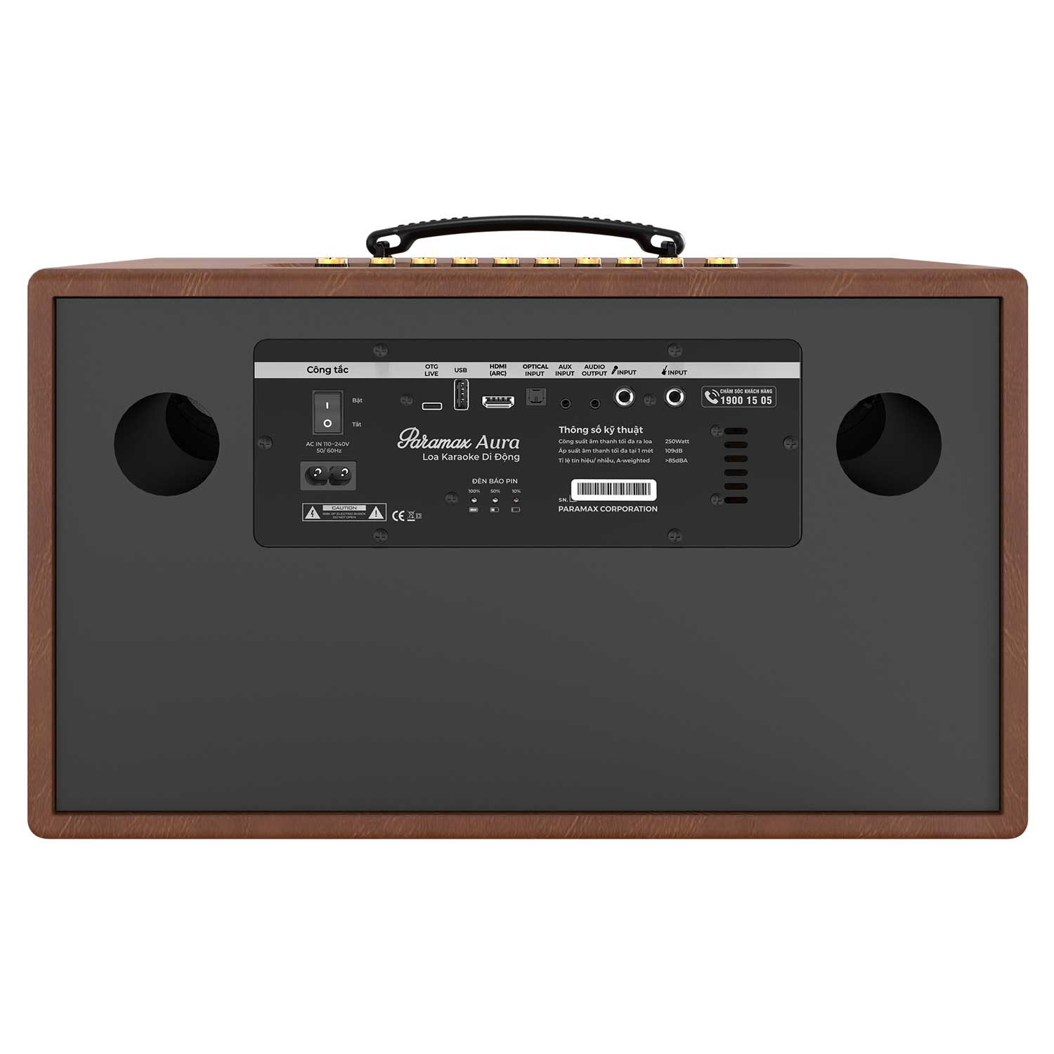 Loa karaoke di động PARAMAX Aura sở hữu 04 loa thành phần được kế thừa thiết kế từ các mẫu loa Hi-Fi EURO Series, gồm hai loa bổng 7.2cm và hai loa trung trầm kích thước lớn 16.5cm.