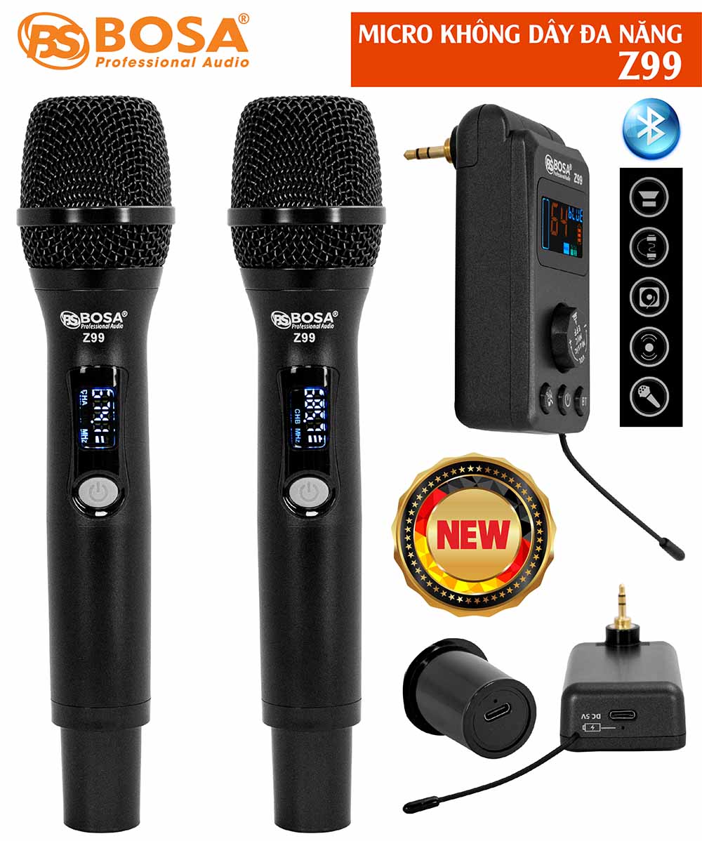 Hệ Thống 2 Micro UHF Chống Nhiễu Hiệu Quả: Với 2 tay micro không dây hoạt động trên dải tần UHF, Z99 đảm bảo khả năng bắt sóng mạnh mẽ, ổn định và chống nhiễu tối ưu. Âm thanh được truyền tải rõ ràng, trung thực, không bị đứt quãng hay lẫn tạp âm.