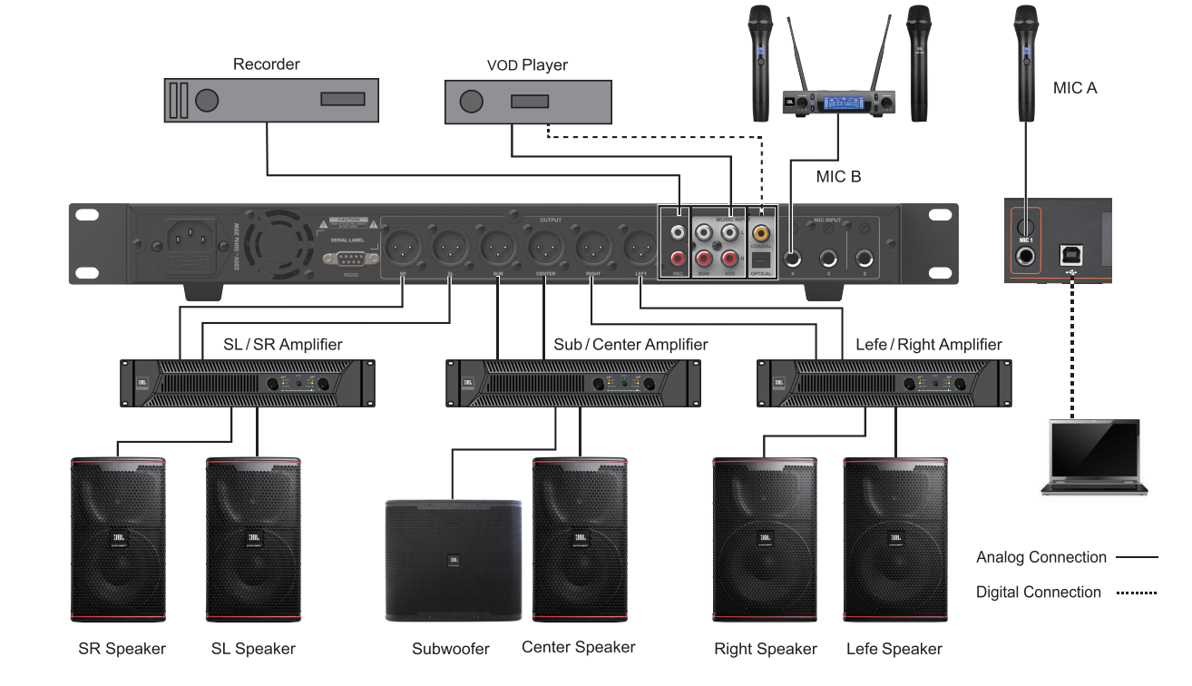 Đáp ứng nhu cầu của mọi quy mô phòng KTV nhờ cung cấp nhiều định dạng đầu vào và đầu ra.