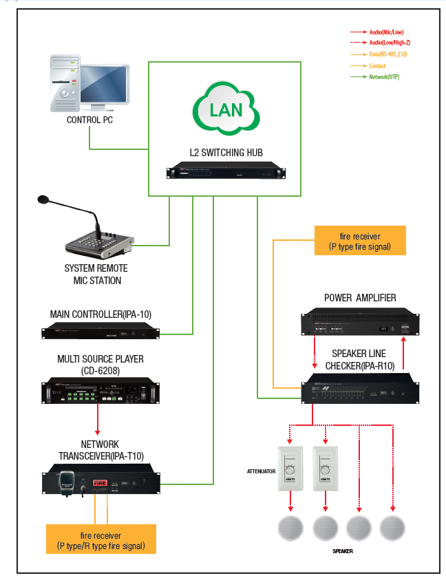 The device can connect Inter-M’s Network Connecting System and paging broadcast through it.