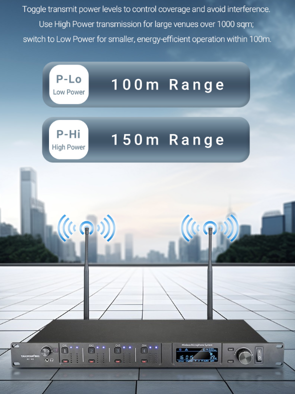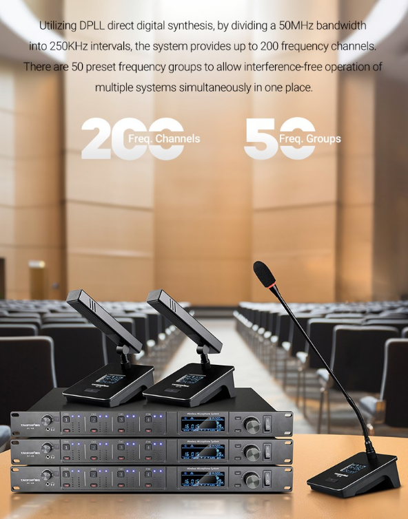 • Utilizes UHF and digital pilot tone to avoid interference and crosstalk.