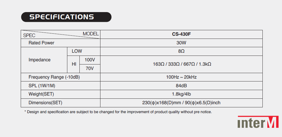 Loa âm trần 30W Inter-M CS-430F