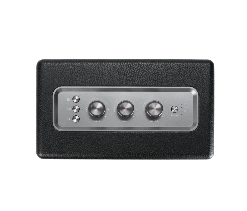 Alpha Works W89 gây ấn tượng với ngoại hình vintage: thân loa bọc da cao cấp, ê-căng kim loại phủ sơn tĩnh điện. Các núm vặn analog giúp tùy chỉnh âm lượng, bass, treble trực quan.