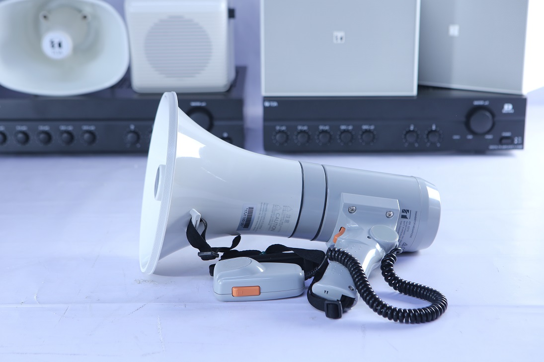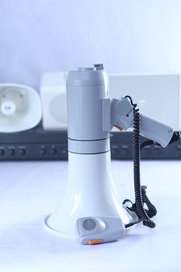 - Miệng megaphone, hộp pin, tay cầm: nhựa ABS, màu xám