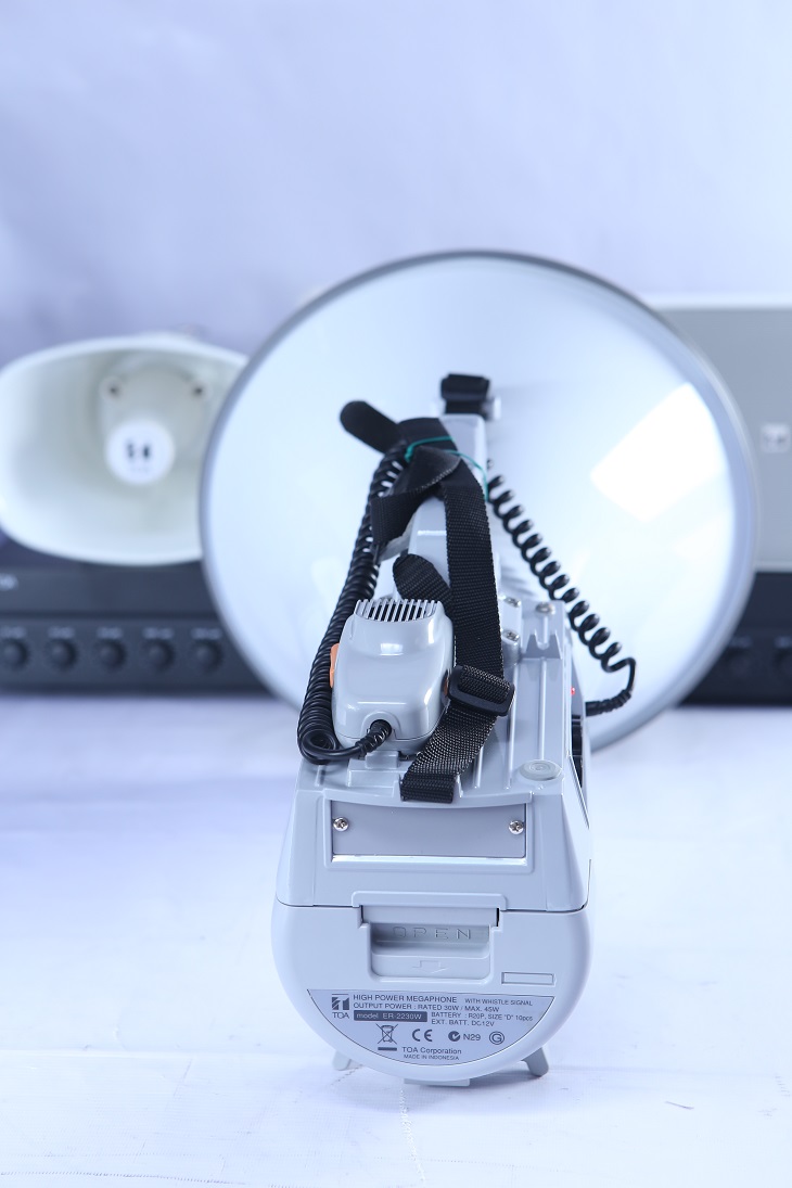 ER-2230W là Megaphone đeo vai có đầu vào micro, đầu vào AUX, đầu vào công suất DC, tiếng còi báo pin. Megaphone có thể được gắn vào chân đế loa ST-16A tùy chọn. Màng loa được sản xuất từ polyimide đảm bảo chất lượng âm thanh cao