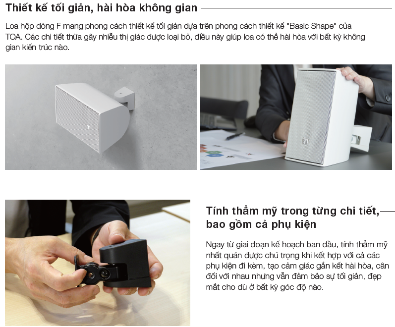 Loa hộp F-08BT thuộc dòng loa hai đường tiếng được thiết kế nhằm mục đích mang lại âm thanh chất lượng cao cho nhiều ứng dụng khác nhau. Loa phù hợp phát nhạc nền cũng như phát âm thanh thông báo. Với kiểu dáng đẹp mắt, loa có thể được gắn lên tường hoặc trần nhà và có thể hài hòa với bất kỳ không gian nội thất nào. Thêm vào đó loa còn được cải tiến tính năng lắp đặt tạm thời giúp cho việc lắp đặt đi dây, điều chỉnh góc phân tán trở nên đơn giản, dễ dàng mà vẫn đảm bảo độ an toàn.