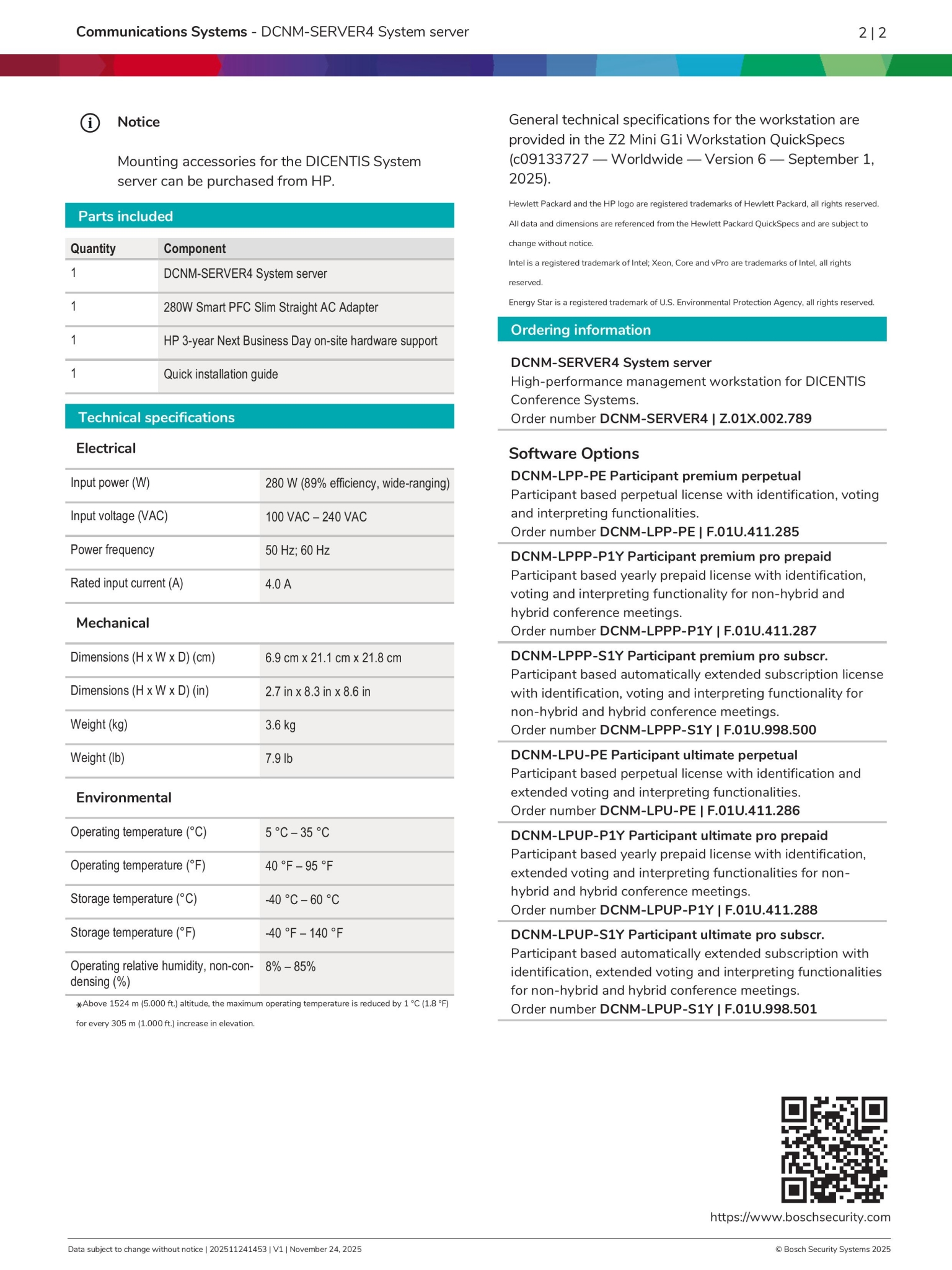| 1 | HP 3-year Next Business Day on-site hardware support |