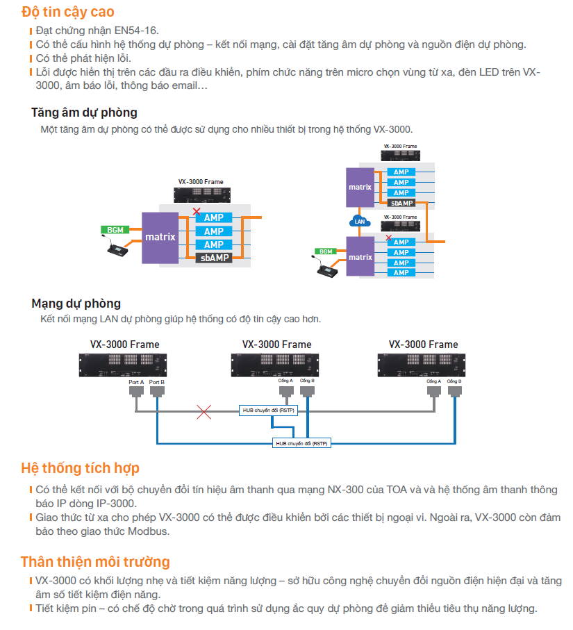 | Cáp kết nối | Dây cáp bọc CPEV (dây âm thanh, dây dữ liệu, dây điều khiển, dây nguồn) hoặc dây cáp bọc loại 5 lõi kép (CAT5-STP), cầu đấu vít M3 |