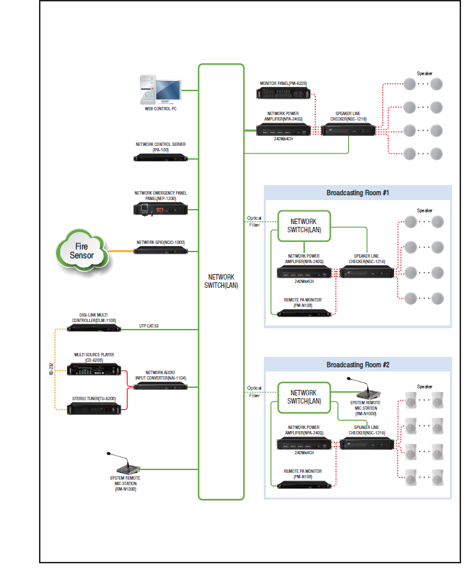 RM-N1000 can connect Inter-M’s Network Connecting System and paging broadcast thorough it.