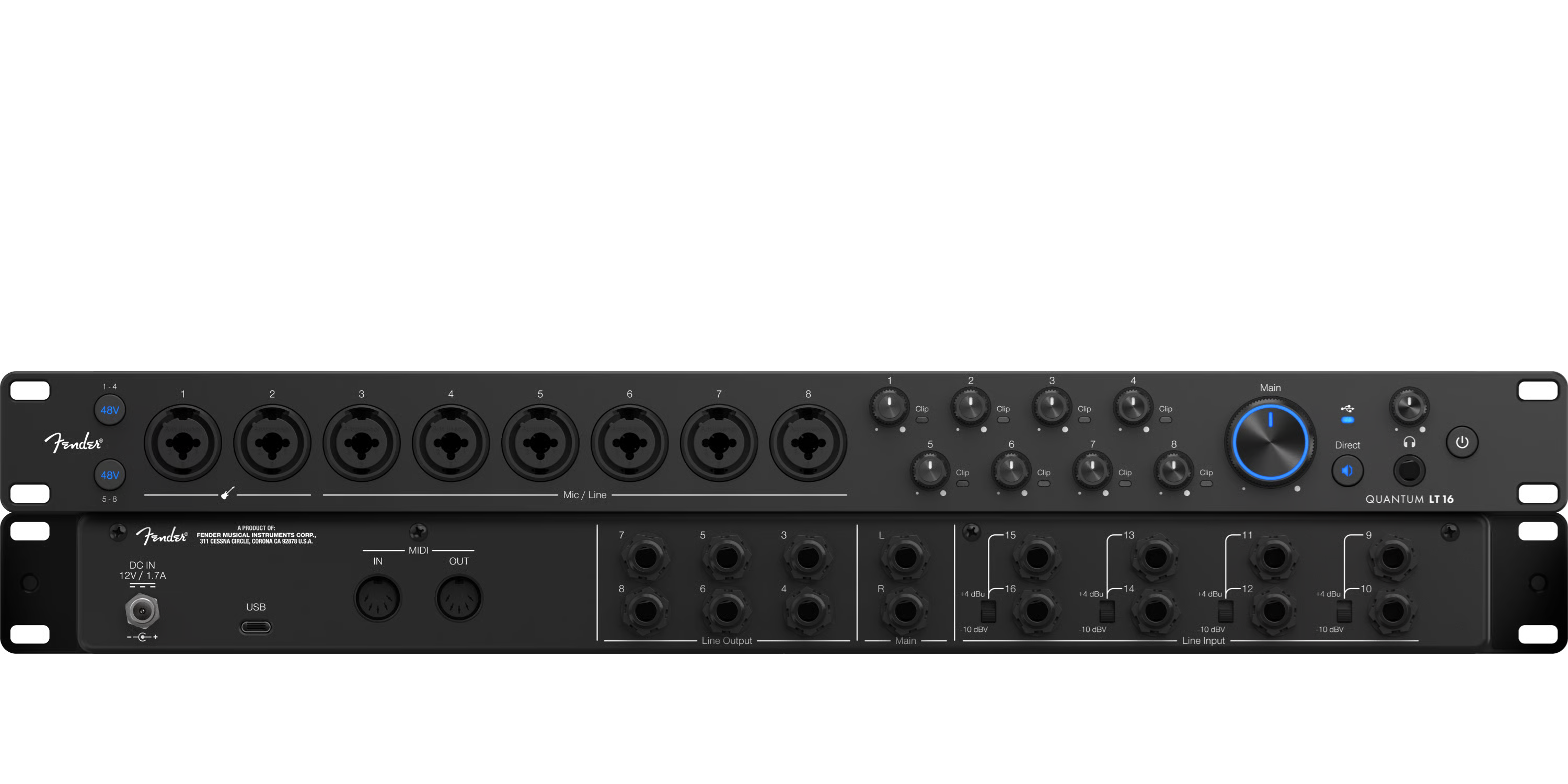 The Fender Quantum LT 16 is the ultimate interface in the LT series, built for project studios, multi-instrument setups, and electronic musicians who demand maximum flexibility. With eight MAX-HD mic preamps offering a massive 75 dB of gain — the most in its class — LT 16 captures pristine sound from large ensembles, drum kits, or multi-mic sessions. Fender-designed instrument inputs and professional-grade converters ensure guitars, basses, and all your sources sound natural and dynamic.